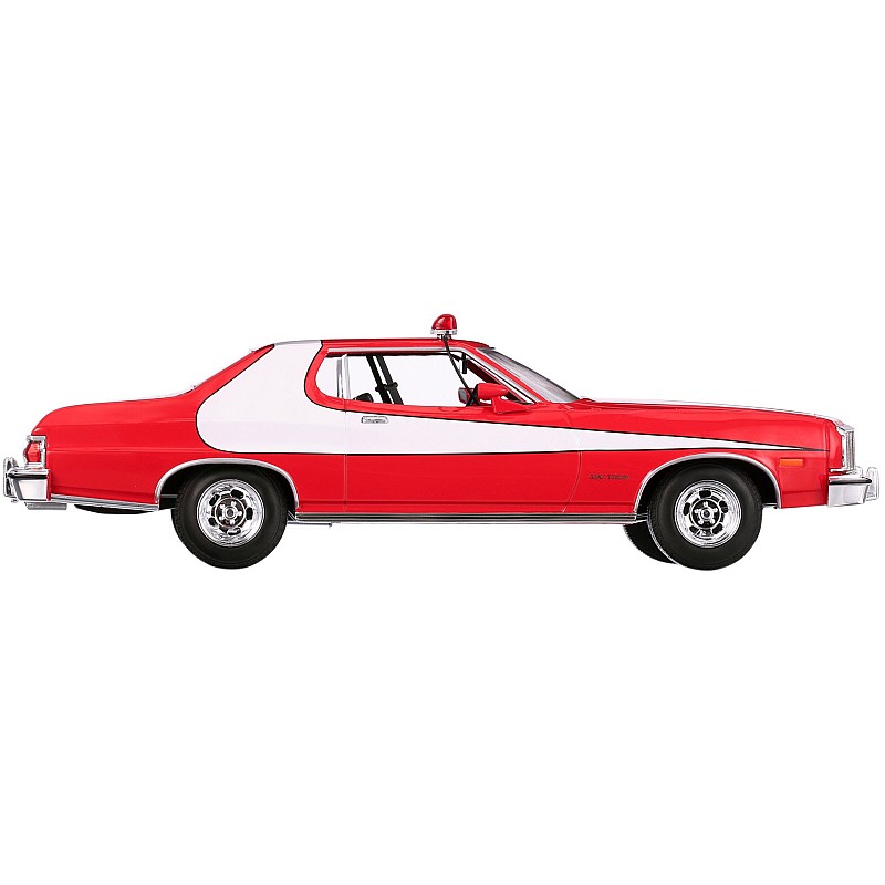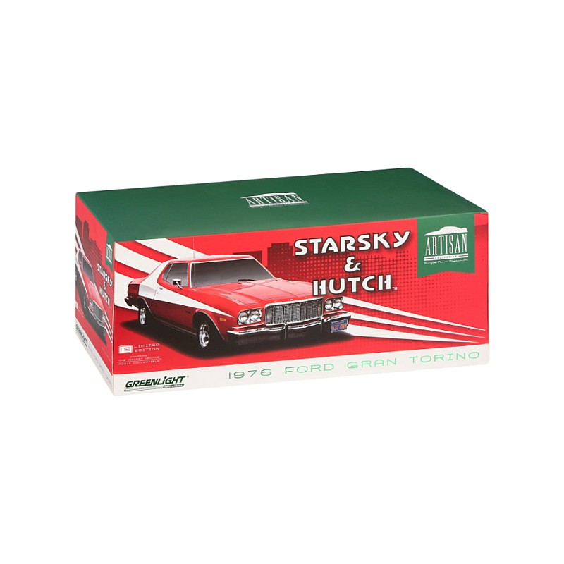 Această replică diecast 1:18 este un Ford Gran Torino 1976 autentic, așa cum se vede în serialul de televiziune „Starsky & Hutch”, și este fabricat de GreenLight Collectibles.