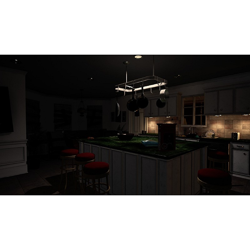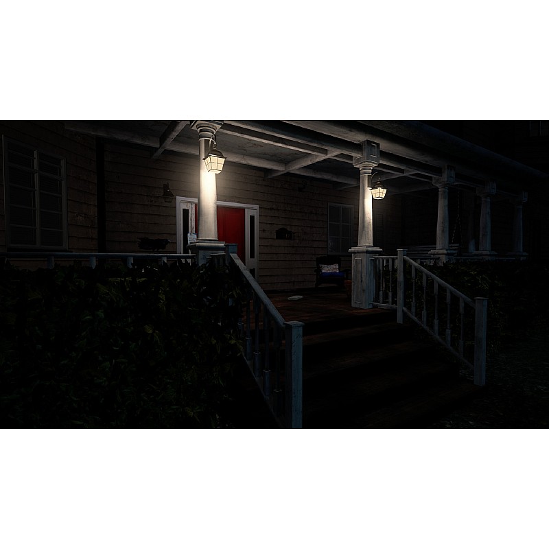 Înarmat cu o lanternă fără baterii, te trezești explorând ceea ce pare a fi o casă liniștită cu aspect obișnuit într-un cartier împădurit.
