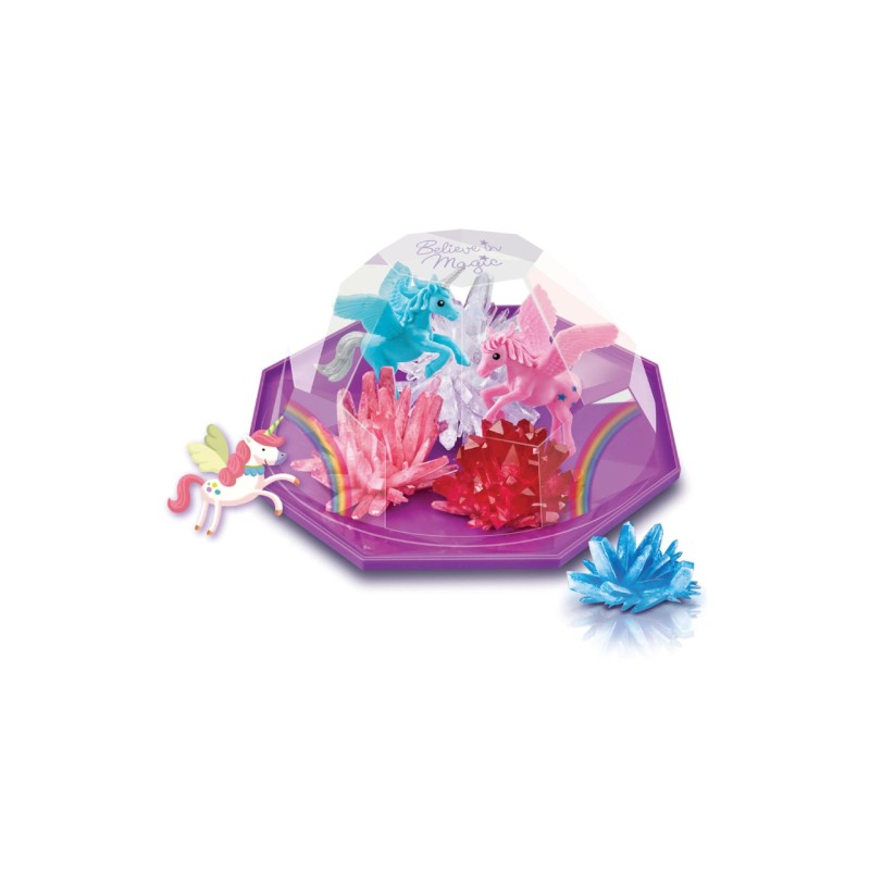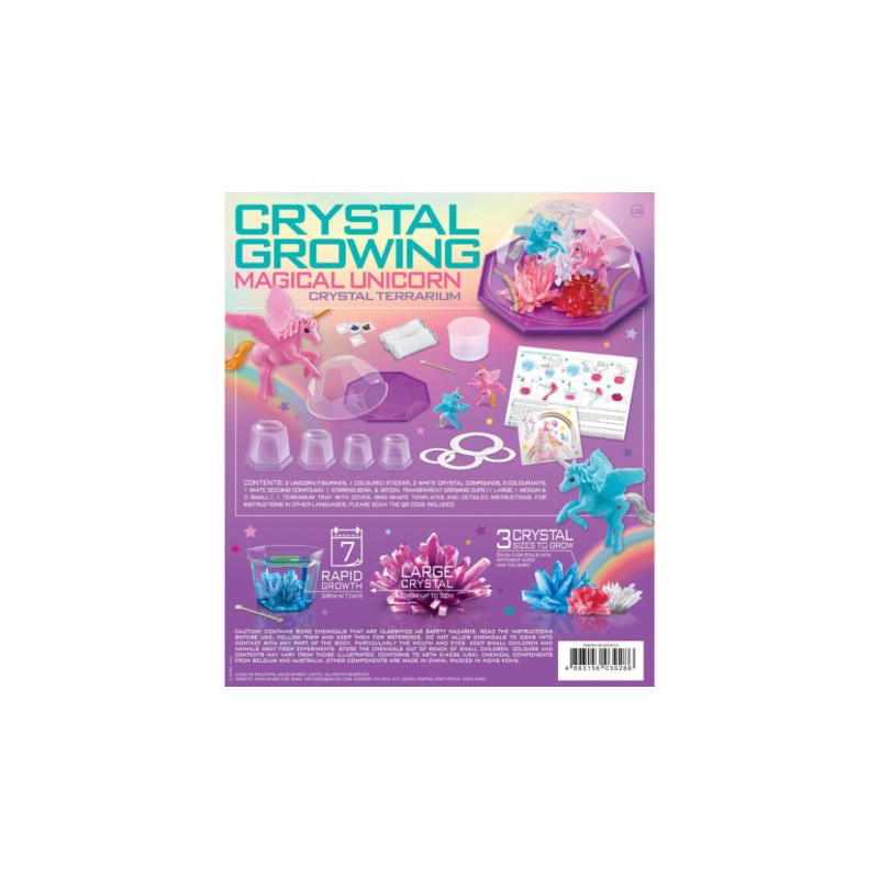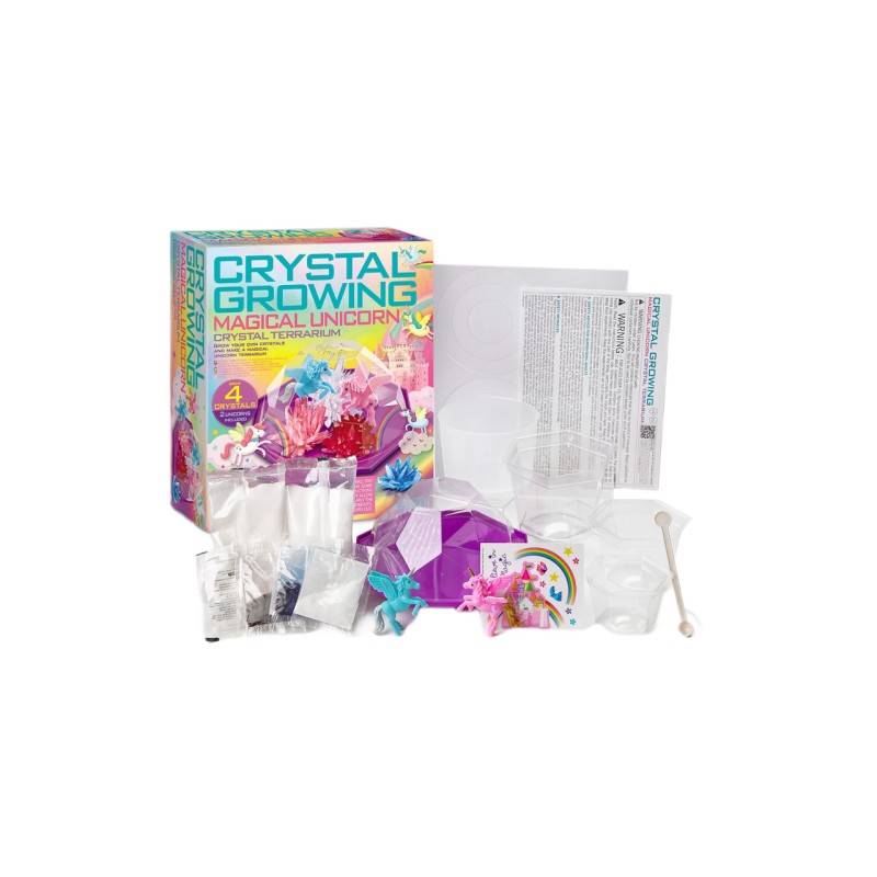 Instrucțiunile sunt incluse și îi vor ghida pe copii să creeze un terariu magic cu unicorni și pot crește 4 cristale colorate. Copiii își pot vedea cristalele crescând ca prin magie timp de 4-7 zile. Este un produs creativ minunat pentru copiii care iubesc știința și unicornii.