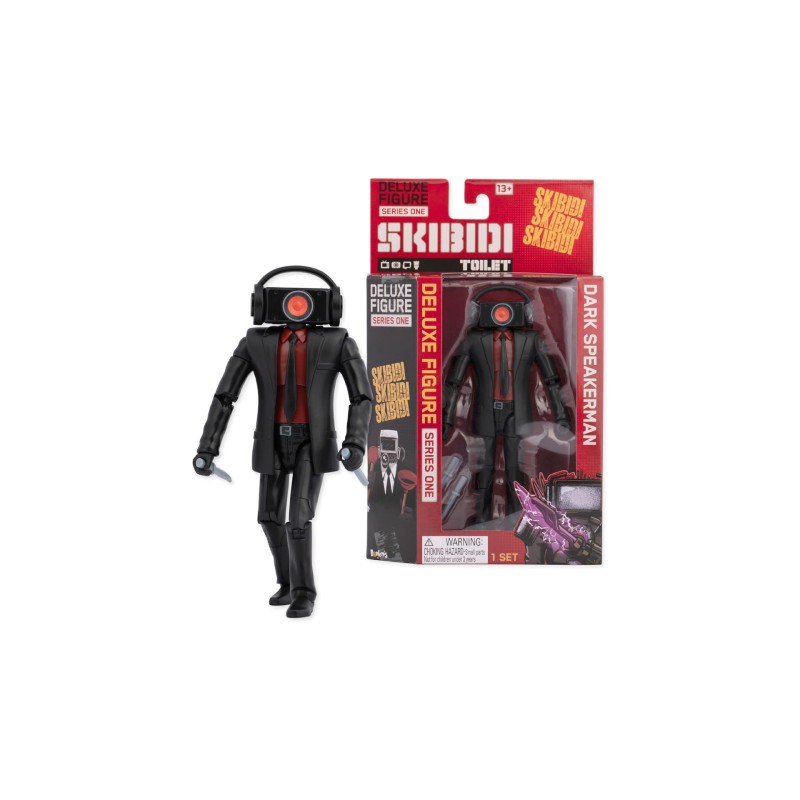 Conținute o figurină de acțiune Dark Speakerman și doua accesorii pentru arme.