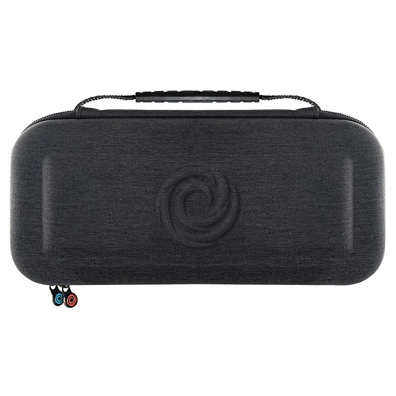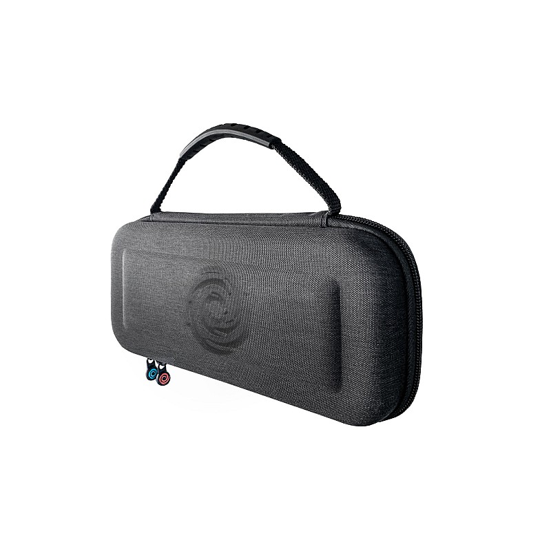 Pentru a vă lua consola cu dvs. oriunde ați merge, această husă este rigidă, impermeabilă și echipată cu un mâner de transport.