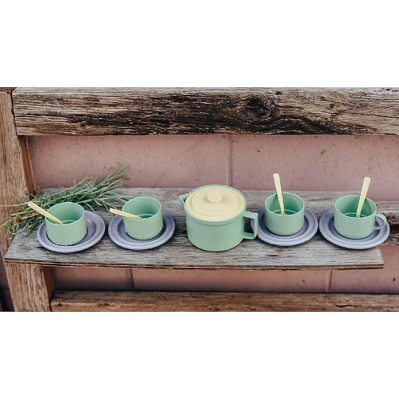 Setul de veselă de cafea Plasto pentru patru persoane este un plus ecologic pentru joaca de acasă.