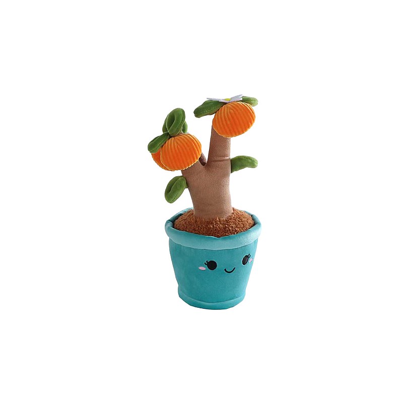 Cu o coroană bogată în detalii colorate și o expresie prietenoasă pe ghiveciul său moale, această jucărie decorativă este perfectă atât pentru joacă, cât și pentru a înveseli rafturile sau biroul.