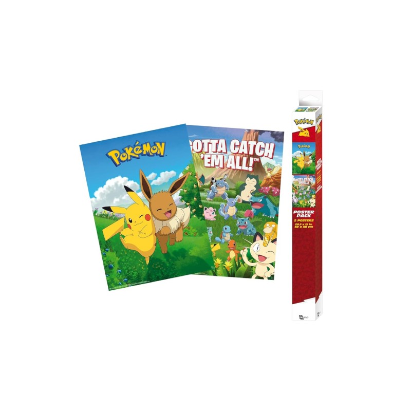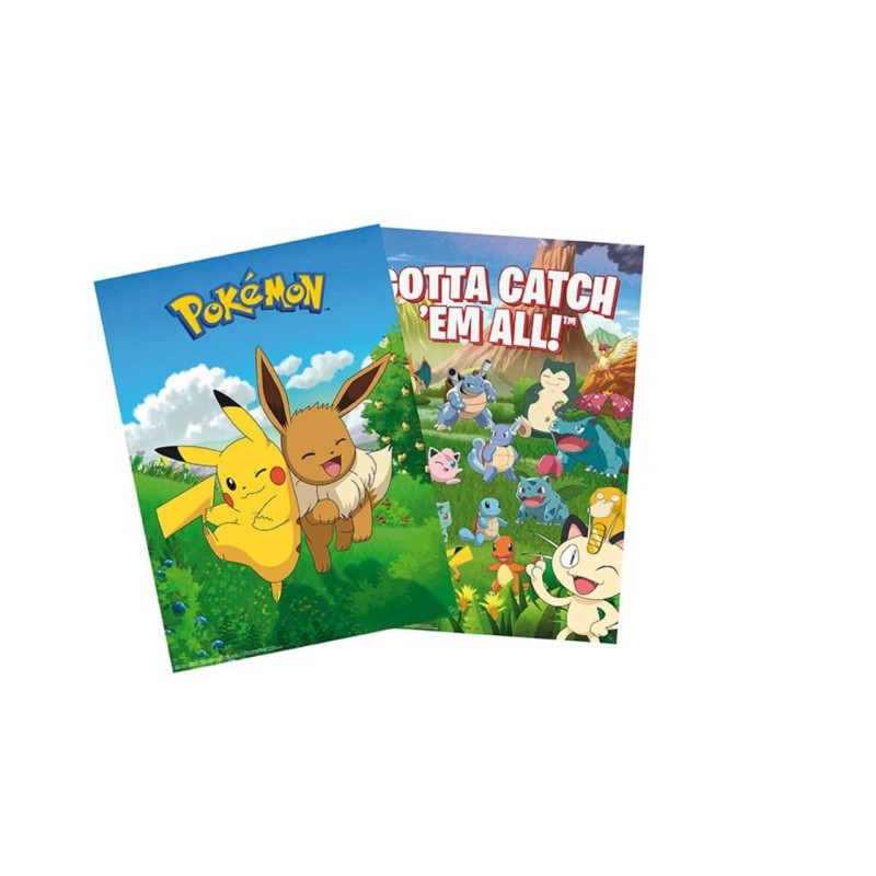 Vezi dacă îi poți prinde pe toți cu acest set de 2 postere chibi alcătuit din mulți dintre Pokemonii tăi preferați și bineînțeles Pikachu și Eevi, by GB Eye!