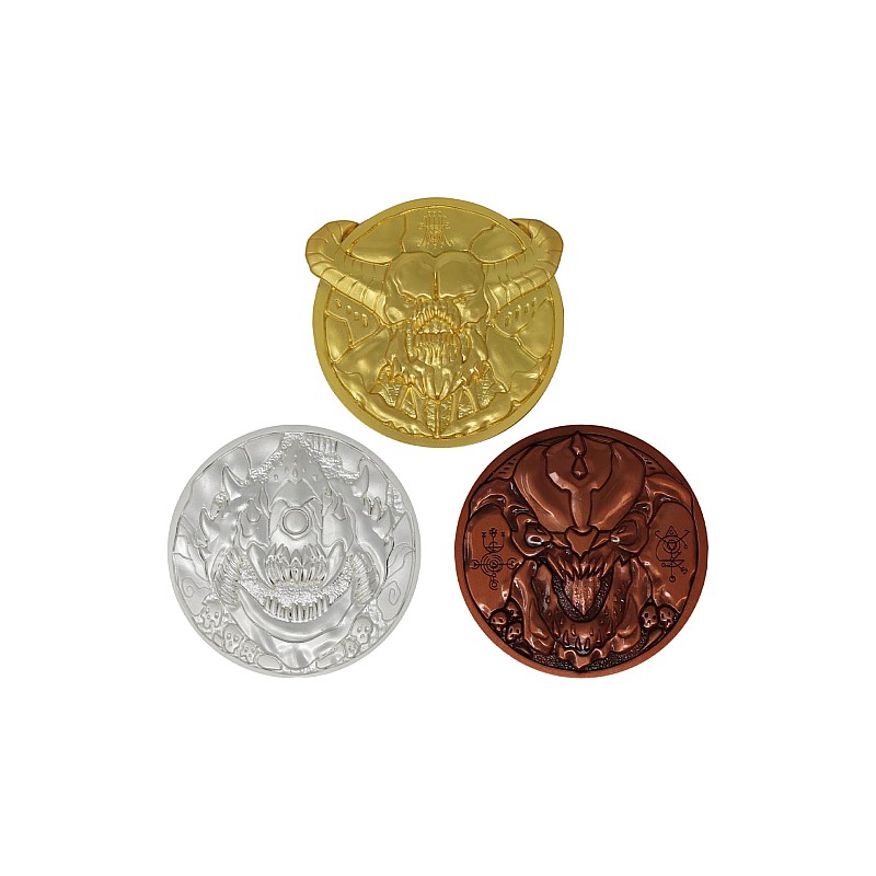 Medalioanele prezinta pe Baronul Iadului pe un medalion placat cu aur, Cacodemon pe un medalion placat cu argint și pe Pinky pe un medalion de bronz.