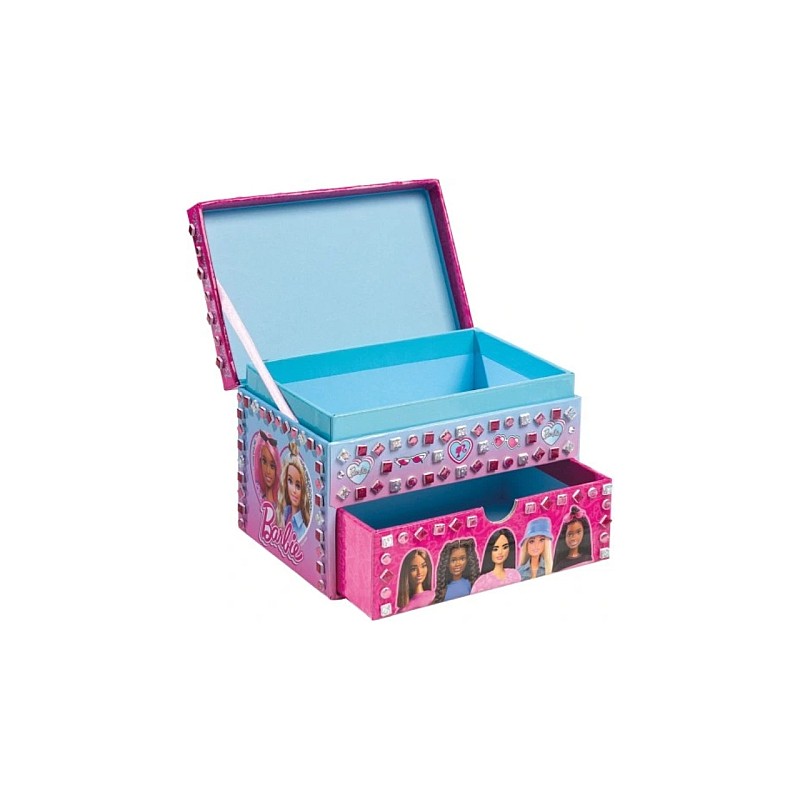 Cutie de bijuterii adorabilă cu design caracteristic Barbie. Ușor de decorat cu strasuri autocolante și piese de mozaic din spumă.