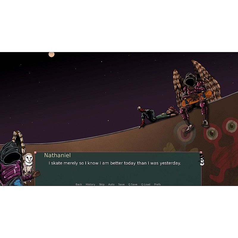 - Discutați cu personaje unice, precum un înger skateboarder, o prietenă demonică și cea mai bună prietenă, și cei mai puțin umani oameni din jur.