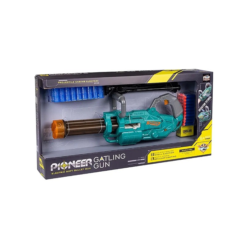 Mitraliera electrică „Pioneer” tip Gatling este o jucărie captivantă de tip „soft bullet gun”, concepută special pentru copii.