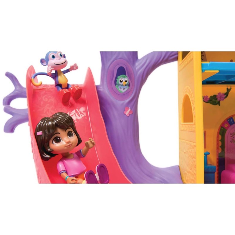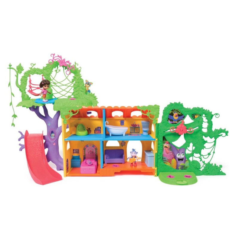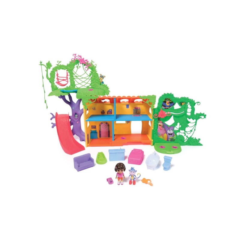 Pentru aventuri și mai palpitante cu Dora exploratoarea, construiește-ți propria lume a Dorei cu casa de păpuși Rainforest Casita, care arată exact ca casa Dorei din serial.