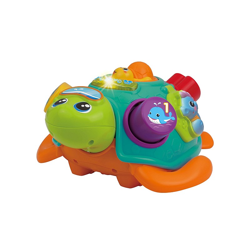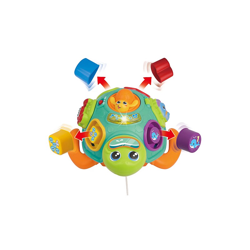 Jucaria este dotata cu butoane care ofera oportunitati de invatare si divertisment variate. De la culori si forme, pana la numere si animale marine, fiecare apasare a unui buton aduce cu sine noi descoperiri si informatii.