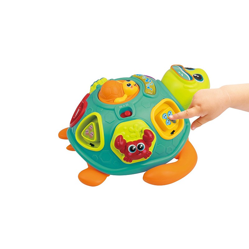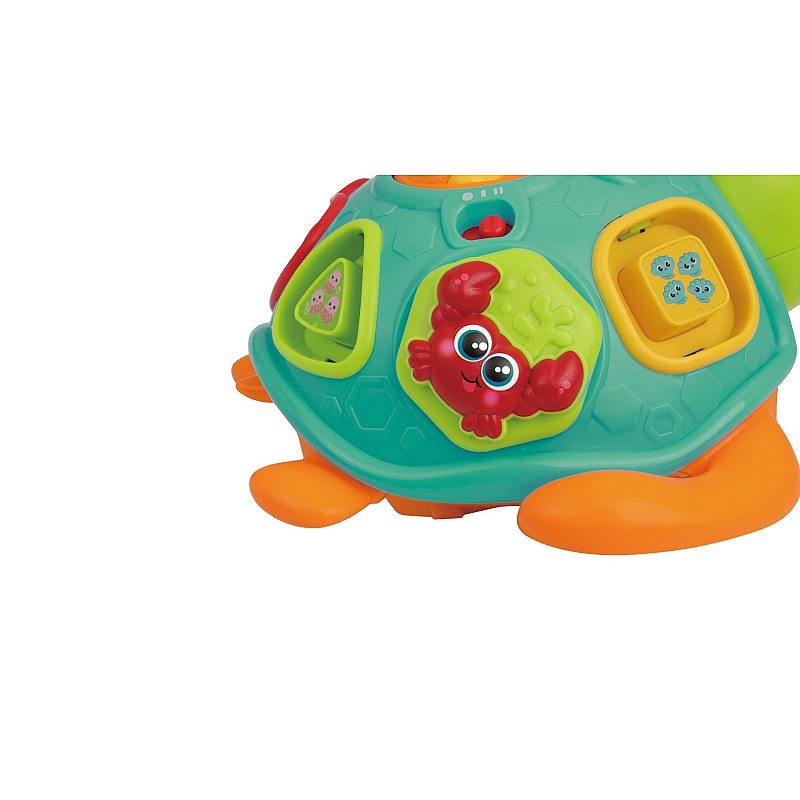 Testoasa de tras cu sortare de forme si blocuri colorate - este o jucarie educativa si interactiva, perfecta pentru dezvoltarea abilitatilor motorii fine si a intelegerii conceptelor de baza.