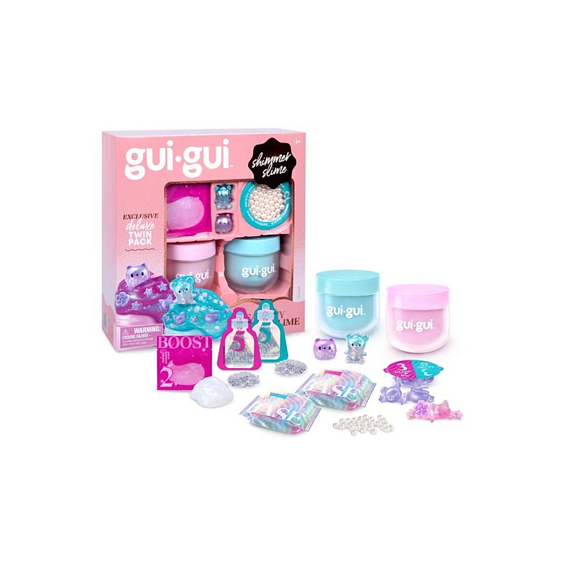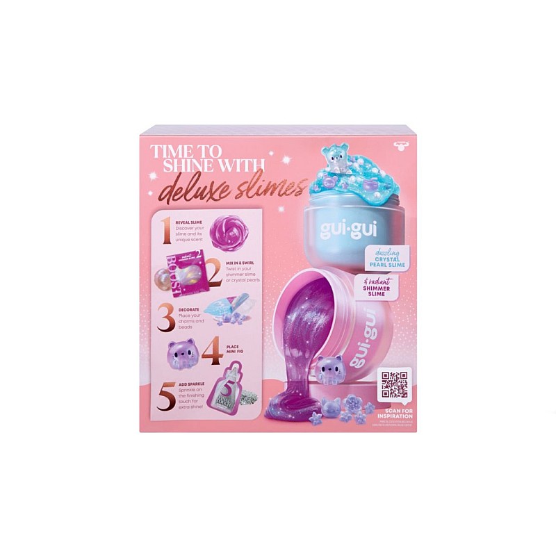 Treci la nivelul următor în jocul cu slime și conferă-i un aspect strălucitor cu pachetul exclusiv Gui Gui Shimmer Deluxe Duo Pack.