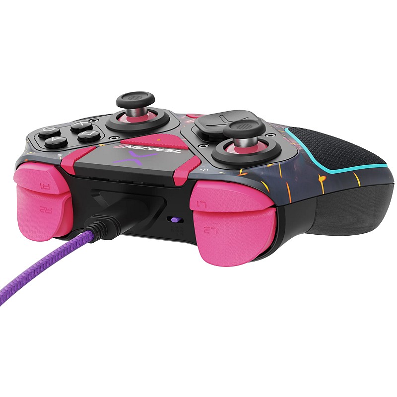 Această ediție specială a controllerului este inspirată de legendarul joc Tekken 8, având un design special, cu detalii exclusive care includ simboluri din universul Tekken și o tematică „Rage A” unică.