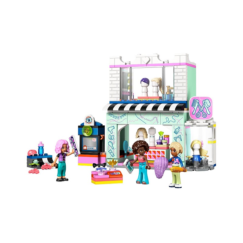 Acest set pentru fete, băieți și orice copil iubitor de accesorii conține 3 mini-papusi LEGO Friends și o mulțime de accesorii de păr pentru jocuri de rol creative.