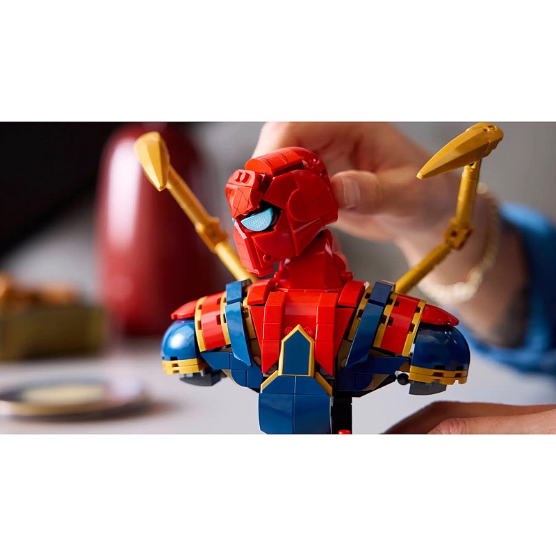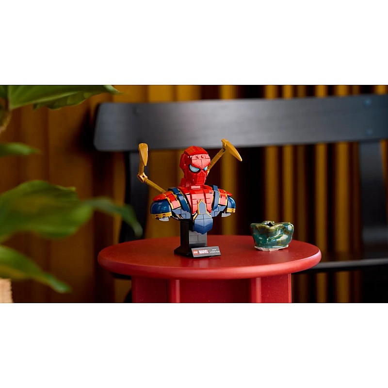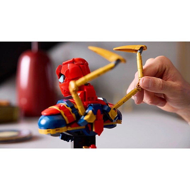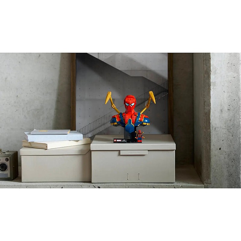 Bustul Iron Spider-Man este un set de colecție pentru constructori experimentați și adulți pasionați de supereroi.