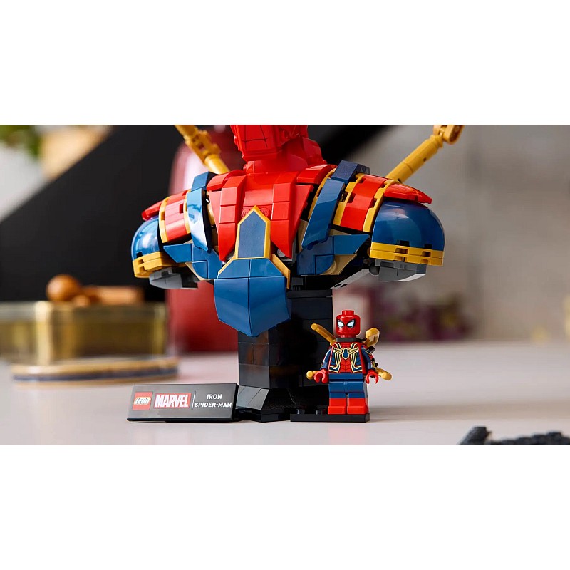 Acest model de construit îl prezintă pe Spider-Man purtând armura Iron Man, completată cu 2 brațe mecanice mobile.